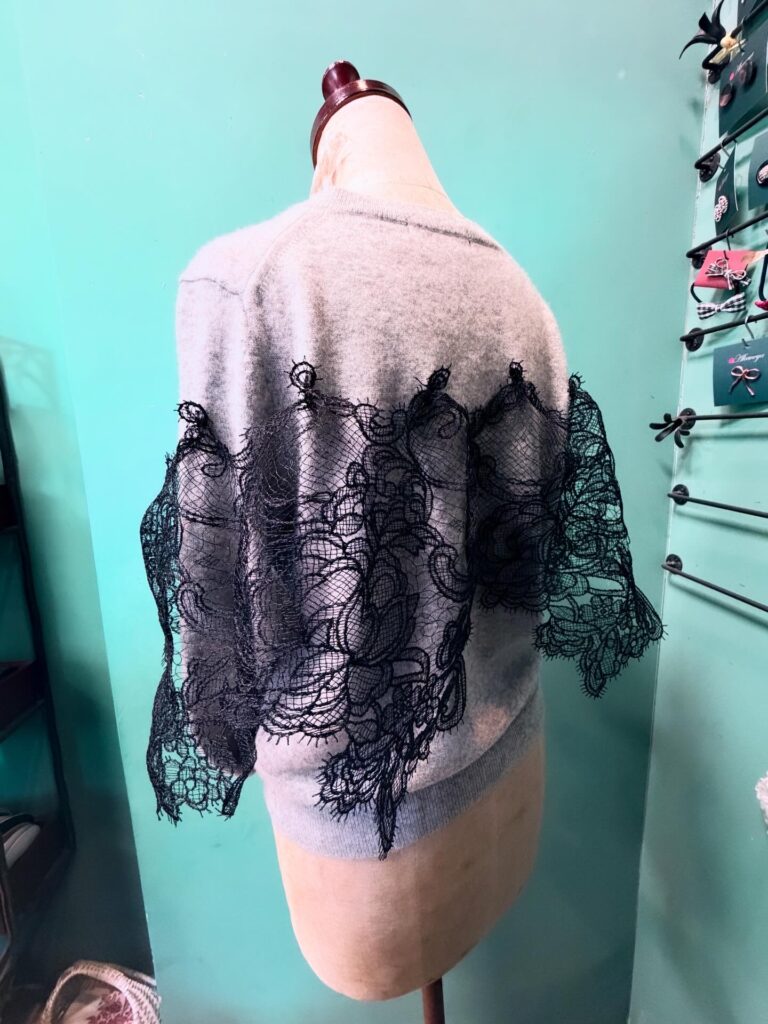 カーディガンにレースが付いたのが欲しくて試作品を作ってみました。
